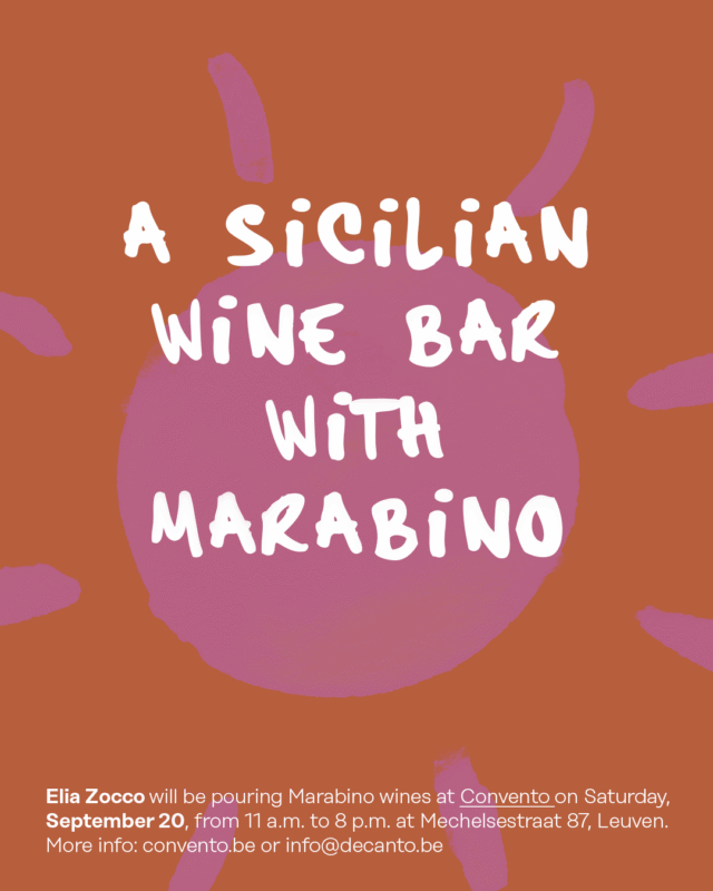 Over twee weken verwelkomen we de immer sympathieke Siciliaan Elia Zocco van Marabino in België en om dit te vieren co-organiseren we evenementen bij Racines en Convento.